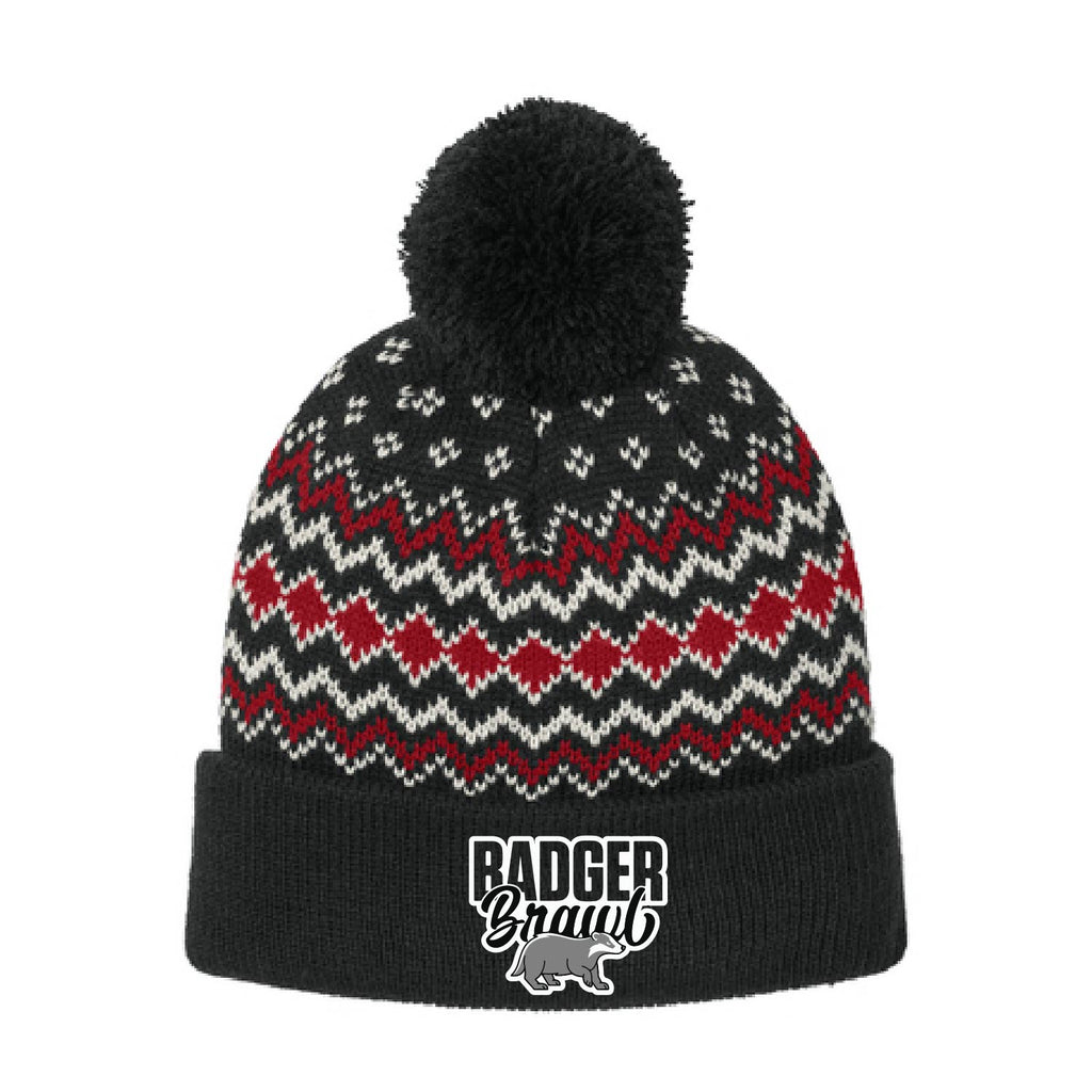 Badger Brawl 25 - Alpine Pom Beanie - Deep Black/Rich Red/Marshmallow